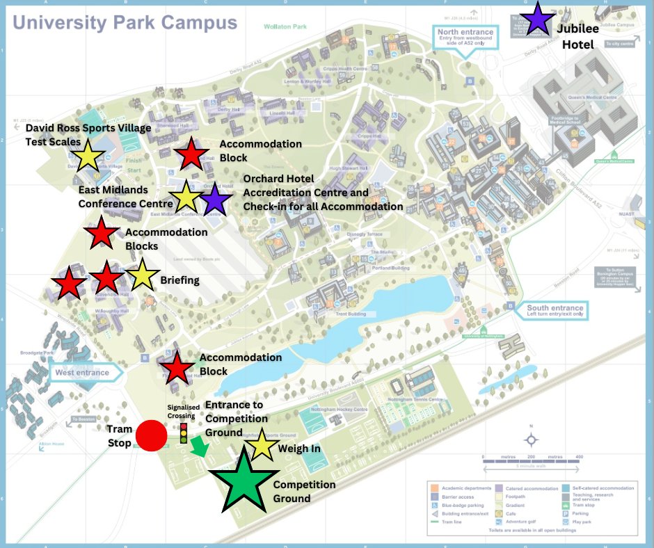 Below are the timings for each day of competition. Please note that some timings may be subject to change if any of the competitions run over. The location for check-in/accreditation, weigh in, accommodation and competition ground can be found on the map at the bottom of this page.